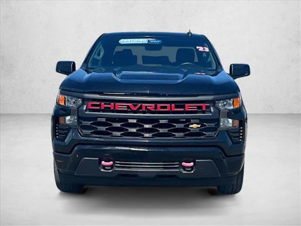 This Vehicle is GM Certified and has a 6 Year POWERTRAIN LIMITED WARRANTY with 24/7 ROADSIDE ASSISTANCE and a 3-Day/150 Mile VEHICLE EXCHANGE PROGRAM . The CPO Service Program is 1-Year/12,000-Miles Bumper to Bumper Limited Warranty $0 Deductible and Transferable, Maximum of two visits for SCHEDULED MAINTENANCE PROGRAM 2 years/24,000 miles . This Chevrolet includes: AUDIO SYSTEM, CHEVROLET INFOTAINMENT 3 SYSTEM 7 AM/FM Stereo Bluetooth Connection Auxiliary Audio Input MP3 Player NOT EQUIPPED WITH STEERING COLUMN LOCK, SEE DEALER FOR DETAILS REAR AXLE, 3.42 RATIO WHEELS, 20 Aluminum Wheels EMISSIONS, FEDERAL REQUIREMENTS BLACK CUSTOM PREFERRED EQUIPMENT GROUP STEERING COLUMN, MANUAL TILT AND TELESCOPING Adjustable Steering Wheel NOT EQUIPPED WITH USB PORTS, REAR, SEE DEALER FOR DETAILS TIRES, 275/60R20 ALL-SEASON, BLACKWALL (STD) Tires - Front All-Season Tires - Rear All-Season ENGINE, 2.7L TURBO HIGH-OUTPUT 4 Cylinder Engine High Output Gasoline Fuel Turbocharged TRANSMISSION, 8-SPEED AUTOMATIC, ELECTRONICALLY CONTROLLED 8-Speed A/T A/T *Note - For third party subscriptions or services, please contact the dealer for more information.* Meticulously inspected -- Worry-free -- Quality assured. All of this comes with a Certified vehicle, like this 2023 Chevrolet. This 2023 Chevrolet Silverado 1500 has such low mileage it has been parked more than driven.