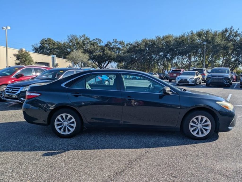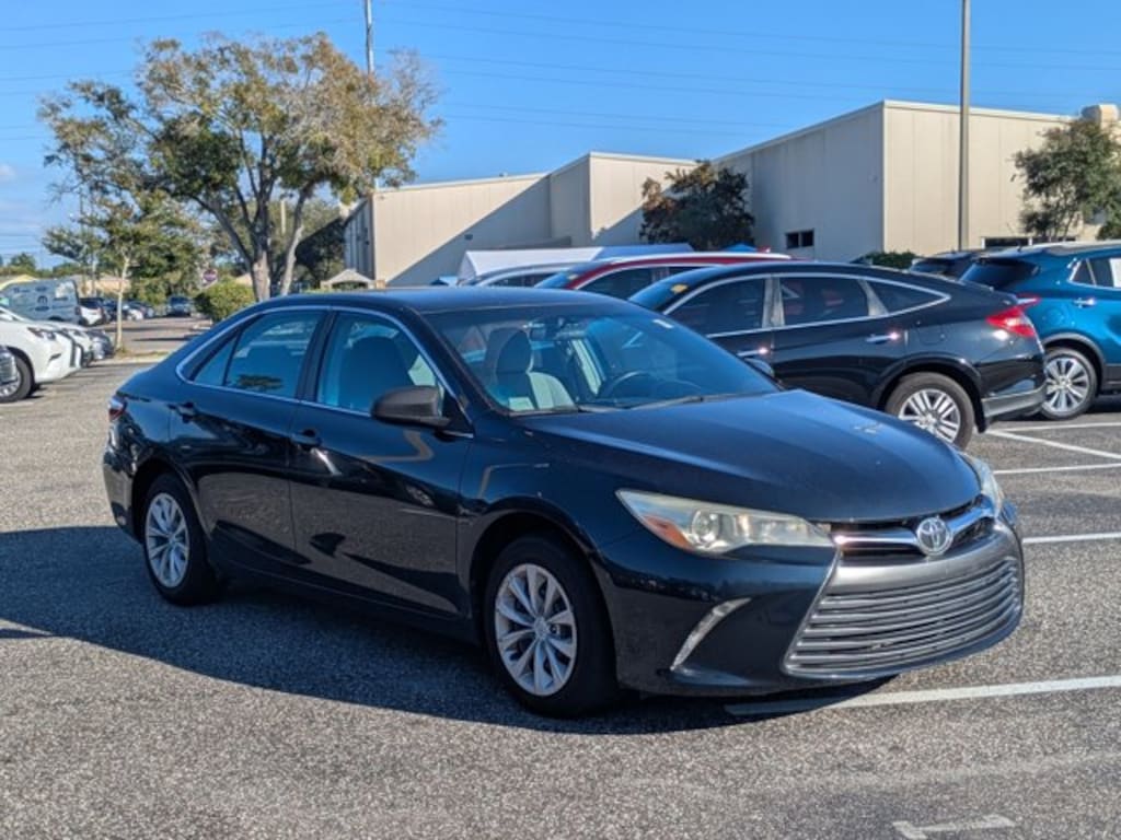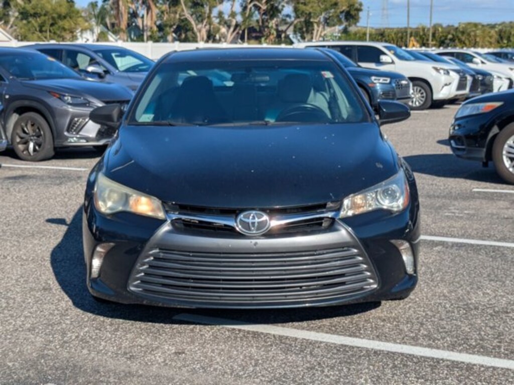 Lexus of Clearwater is excited to offer this 2015 Toyota Camry LE. The greater your fuel-efficiency, the less your carbon footprint. And with exceptional MPGs, this Toyota Camry treads ever so lightly on Mother Earth. Based on the superb condition of this vehicle, along with the options and color, this Toyota Camry LE is sure to sell fast. The quintessential Toyota -- This Toyota Camry LE speaks volumes about its owner, about uncompromising individuality, a passion for driving and standards far above the ordinary. More information about the 2015 Toyota Camry: The Toyota Camry has been the best-selling car in America for twelve years now. The Camry is a massive success and with good reason-- it's got proven reliability, a quiet and spacious interior, good fuel economy and now, exciting exterior styling. For anyone who needs quiet, comfortable transportation for up to five people without breaking the bank, the Camry is invariably the place to start the search. With a starting MSRP of under $23,000 the Camry offers a ton of versatility for the price, but can also be optioned up to give buyers that luxury car feel if they so desire. Strengths of this model include spacious, Reliable, relatively efficient, more aggressive styling than in past years, and comfortable